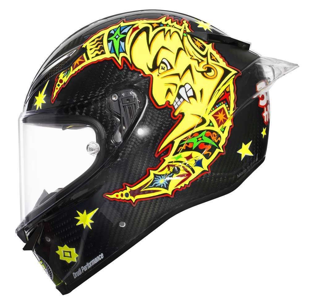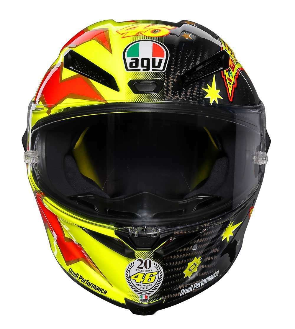 Con motivo de esos 20 años, Rossi, AGV y el diseñador Aldo Drudi, han querido revivir ese primer casco, sobre una base más moderna y acorde a las normas actuales, pero con el mítico Sol y Luna que ha caracterizado a Rossi a lo largo de estos años.